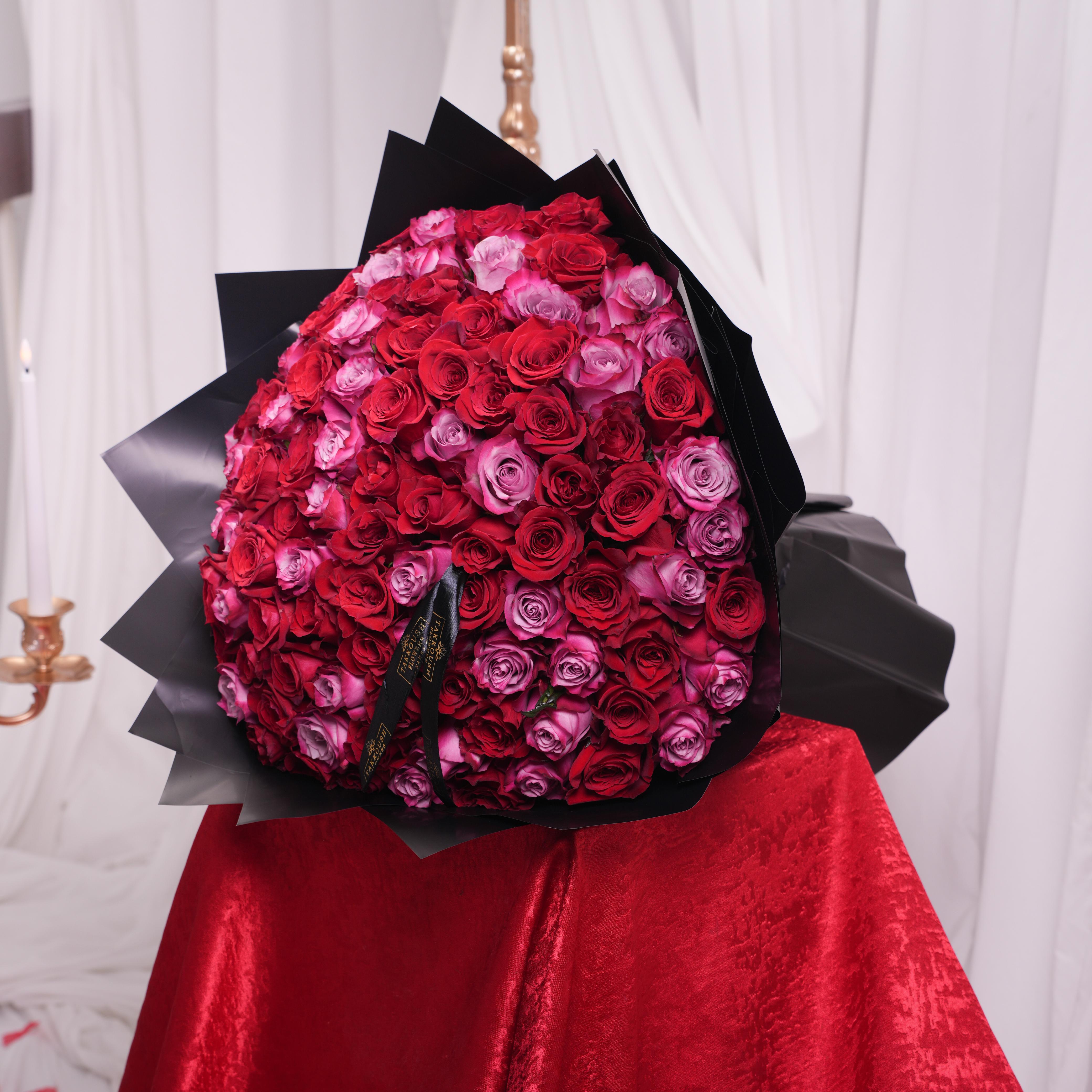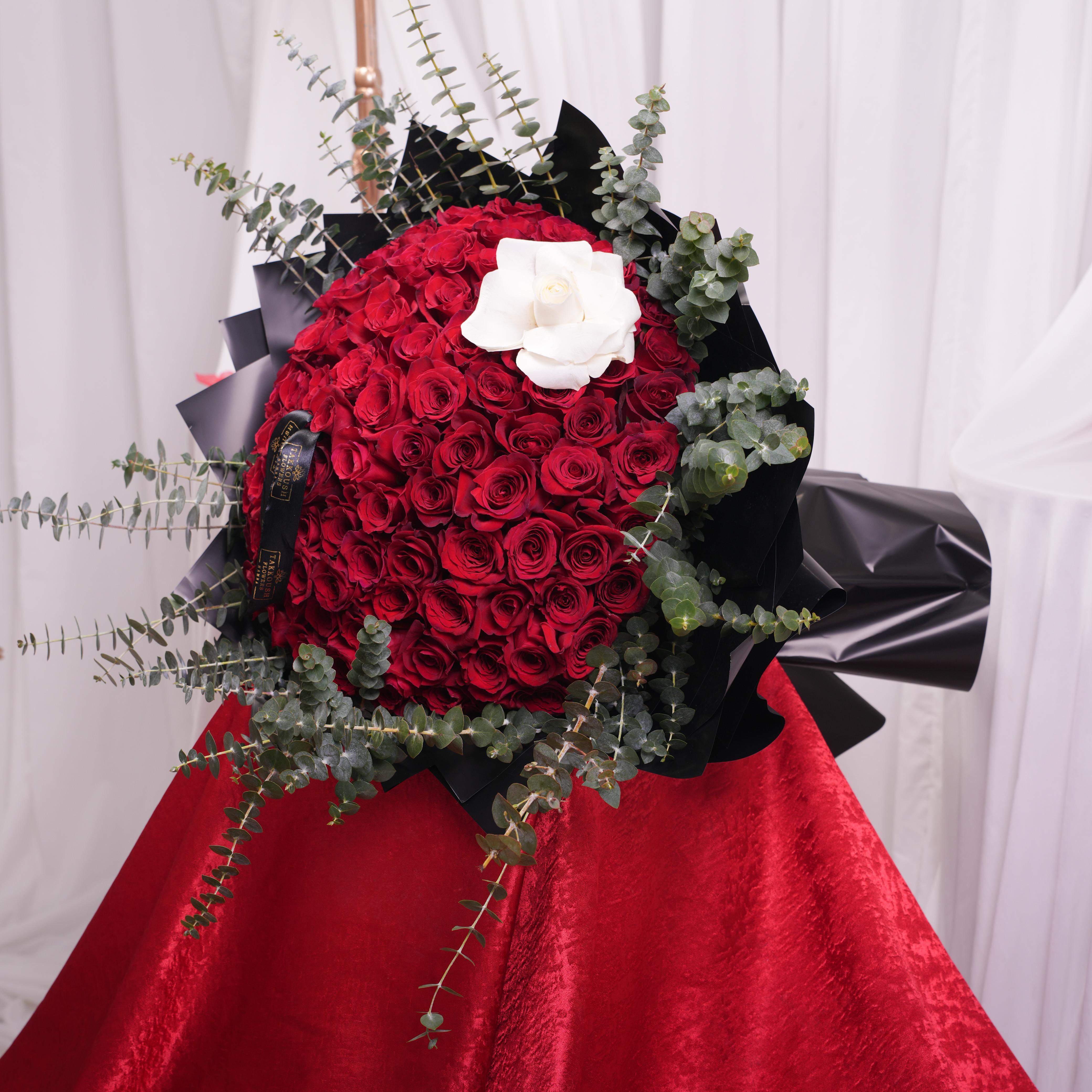 A grand bouquet of 99 red roses with one white rose at the center, creating a bold and royal statement of love. Arranged with love, it’s...Regular price $280.00Sale price $280.00 Regular priceUnit price / per -