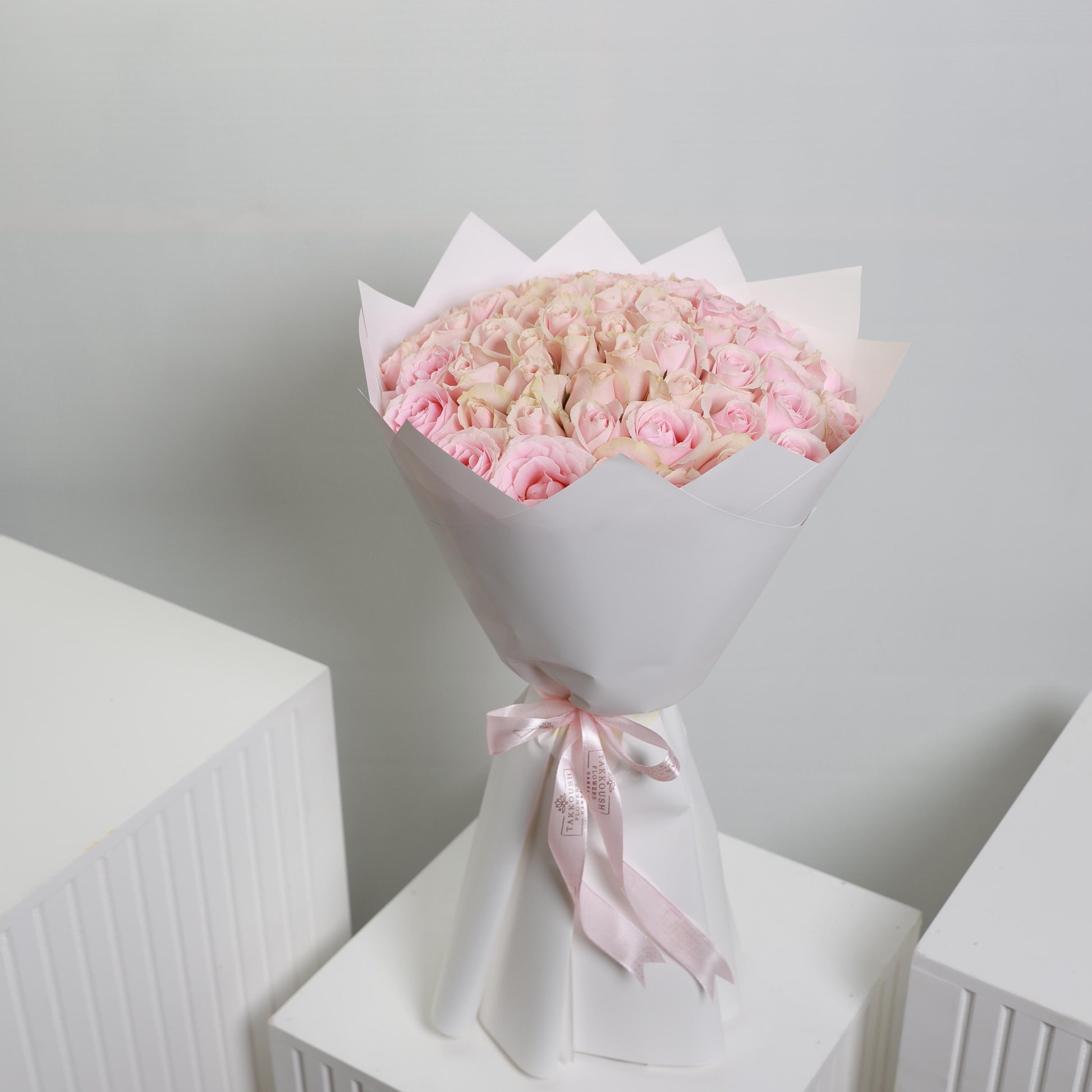 A delicate bouquet of hand-tied light pink roses, symbolizing grace and admiration. Perfectly arranged to get a perfect gift for any occasion.