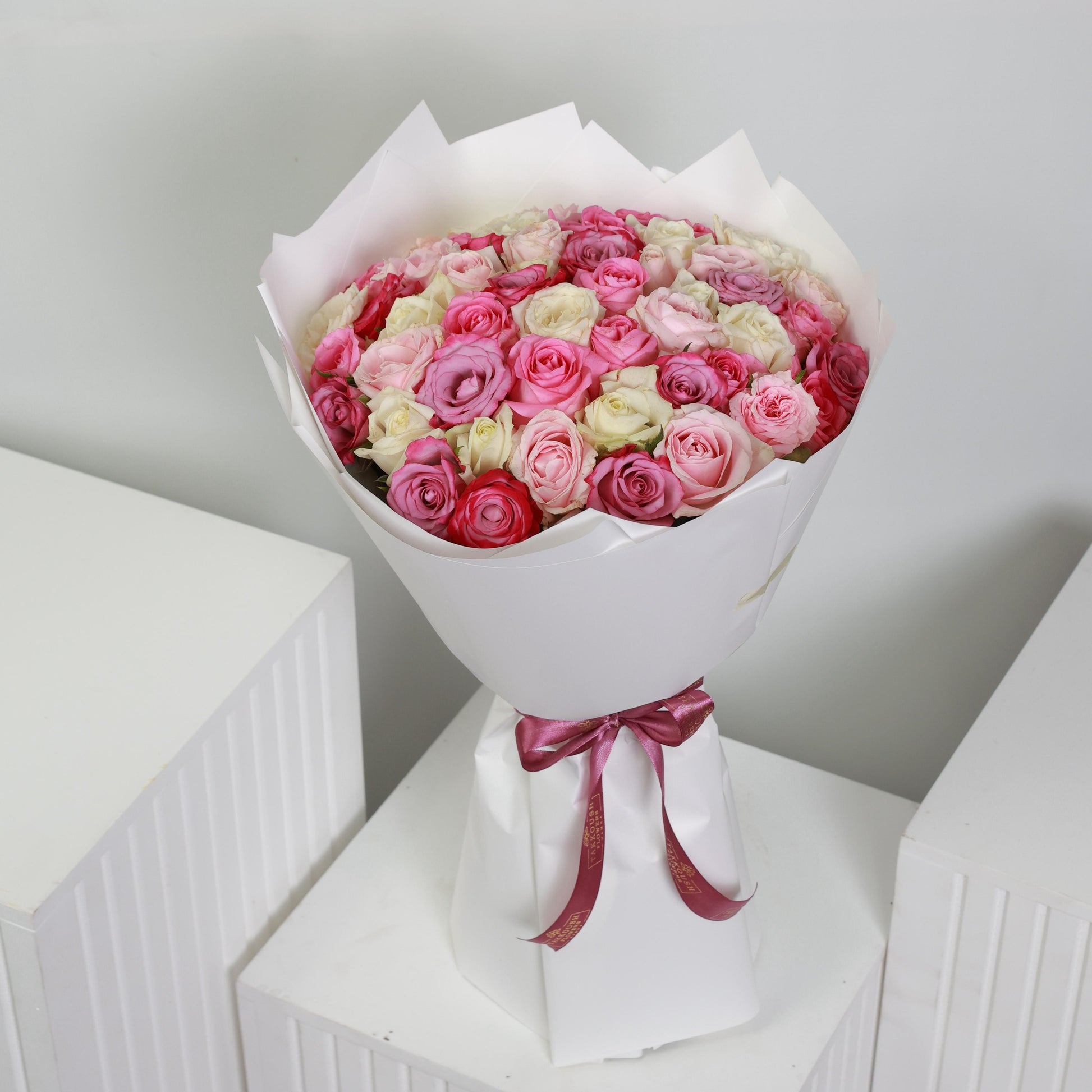 Elevate any occasion with our stunning pastel roses arrangement, meticulously crafted to enchant and delight. Ideal for celebrations, gifts, or as a luxurious addition to your home decor.